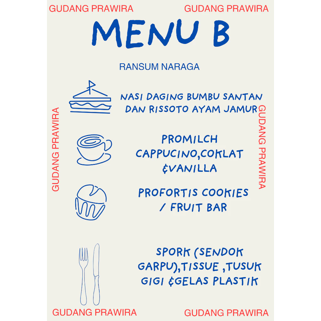 | MTP 3 | 1. Nasi Ayam Bumbu Rujak, Nasi Bali Daging dan Nasi Otak-Otak Ikan. 2. Suplus Rasa Vanila dan Strawberry. 3. Triplus Rasa Mangga. 4. Vitplus RSasa Strawberry. 5. E-plus Rasa Coklat. 6. Kitplus Rasa Vanila. |